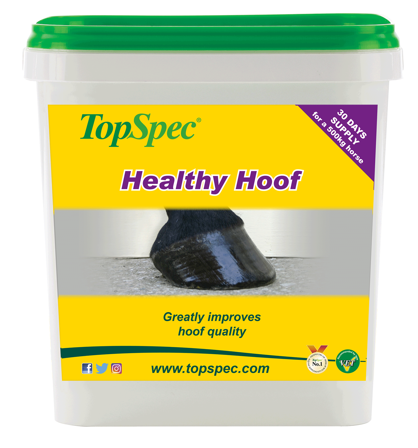 TopSpec Healthy Hoof is designed to greatly improve hoof quality over a period of 9-12 months.
